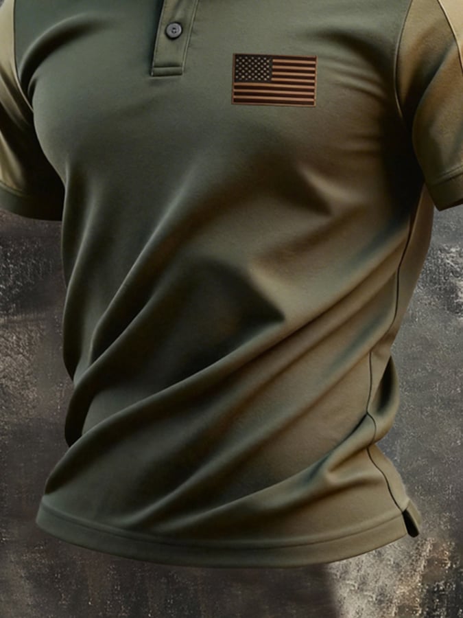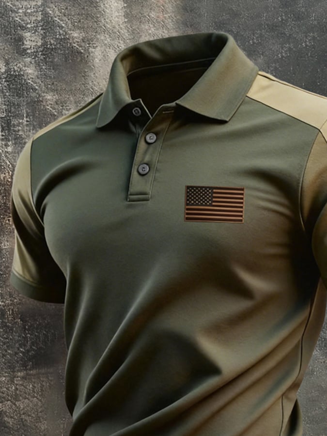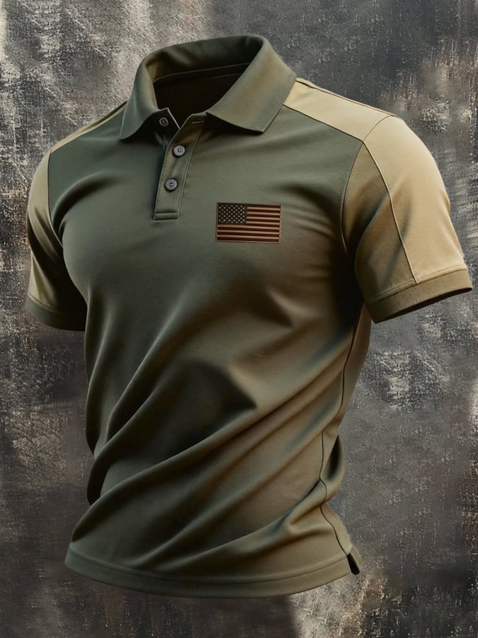 Men's Retro Patriotic Color-Block Short-Sleeve Polo Shirt