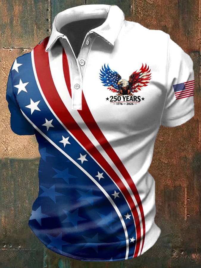 Men's Vintage 250th Anniversary Print Casual Polo Shirt