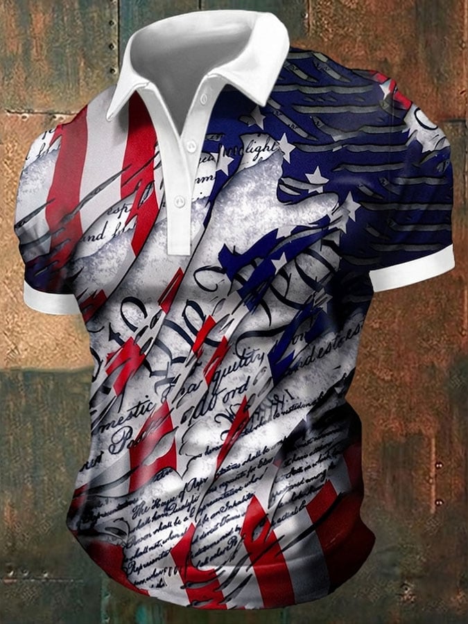 Men's Vintage Flag Print Short-Sleeve Polo Shirt