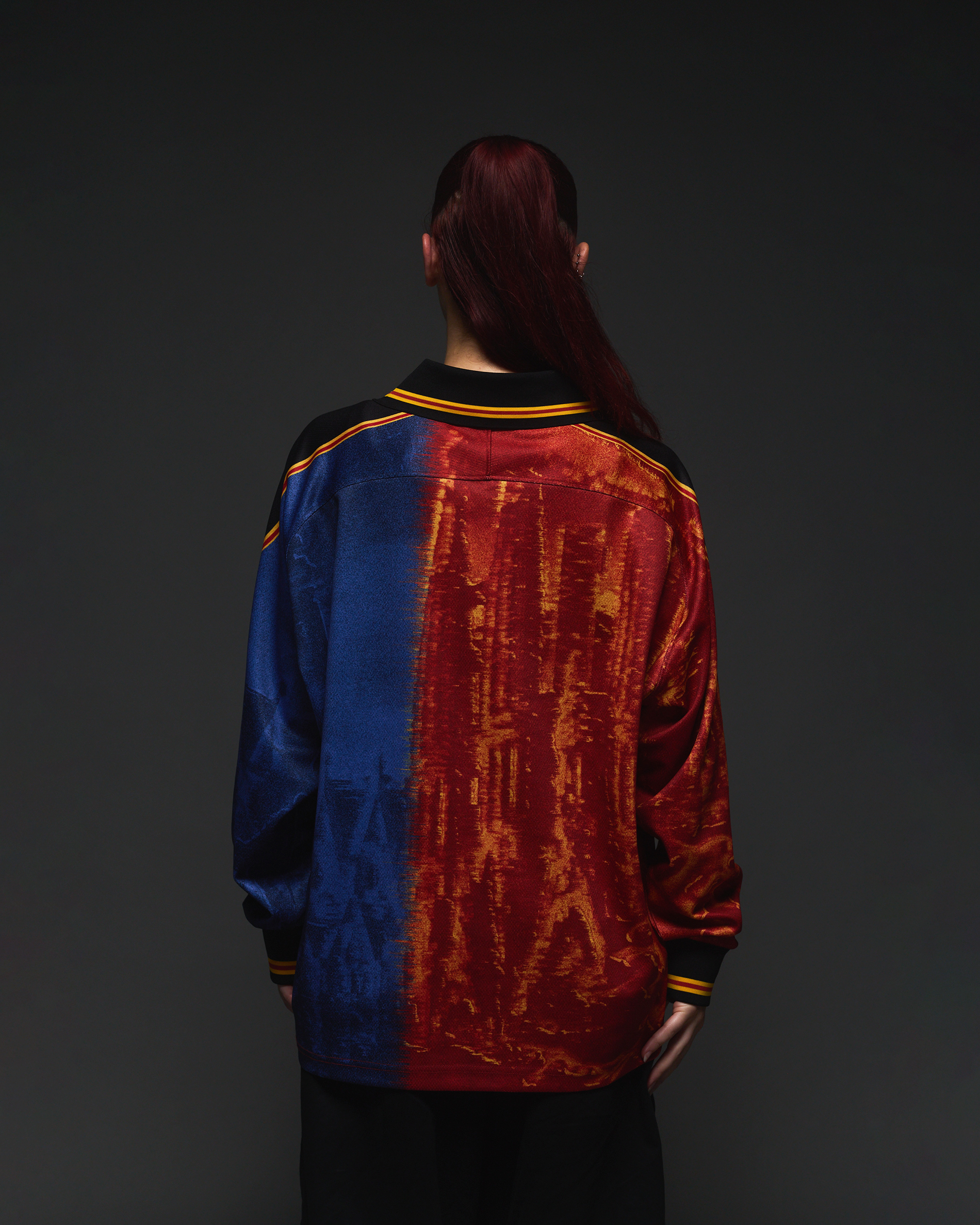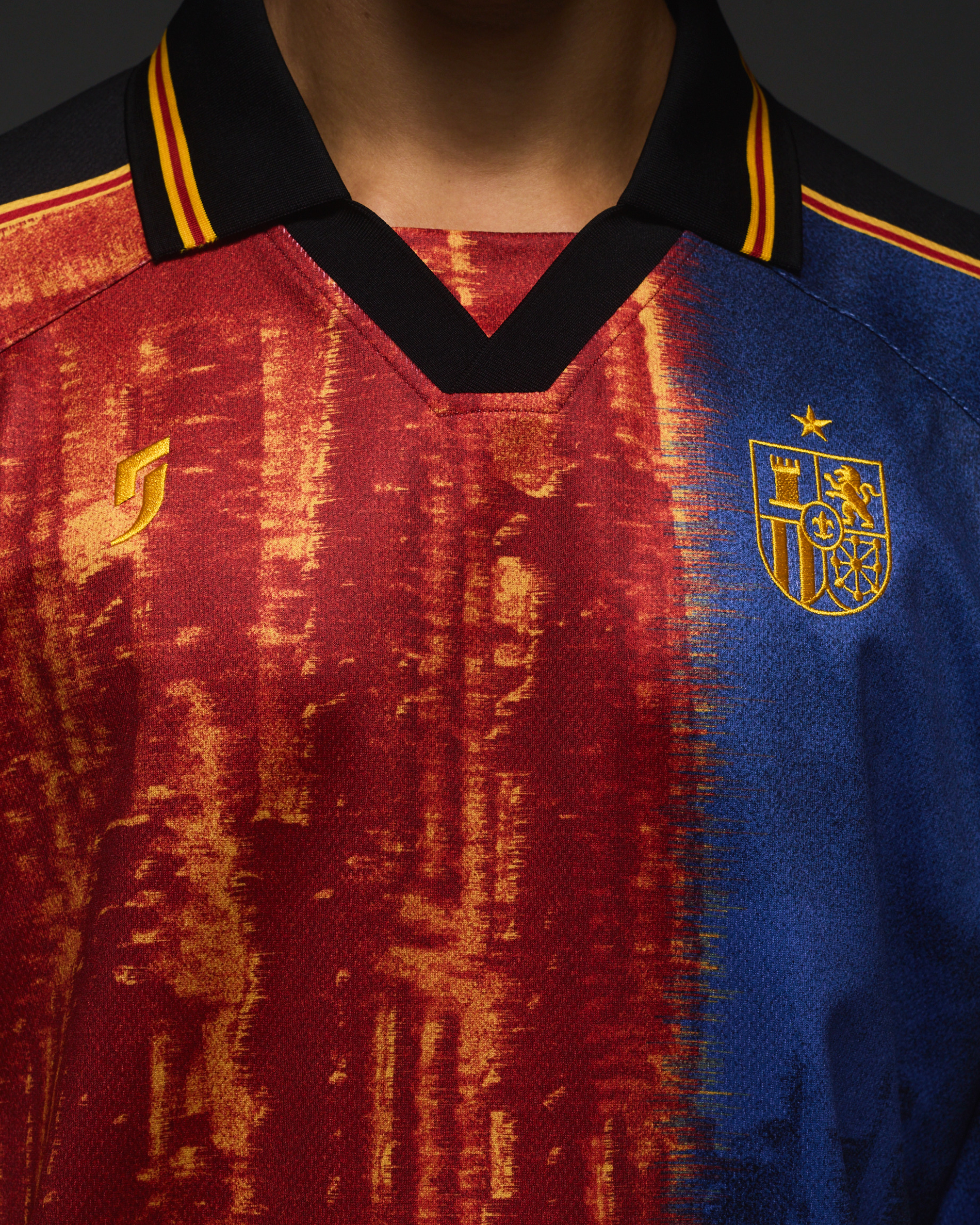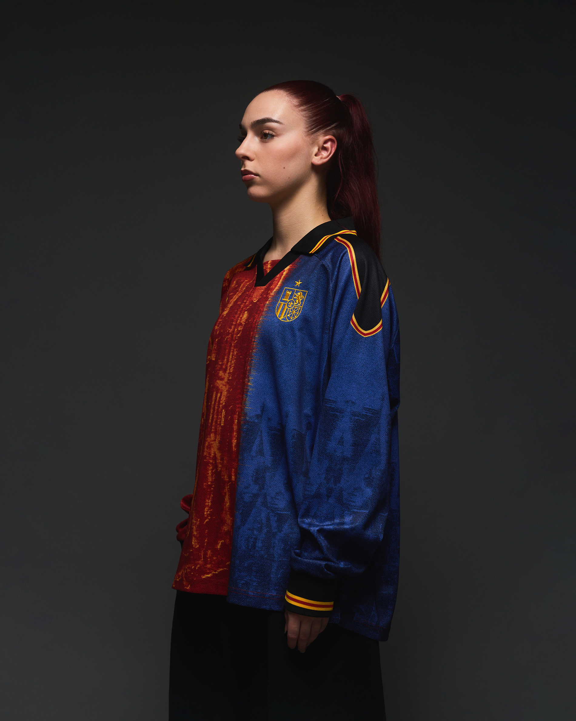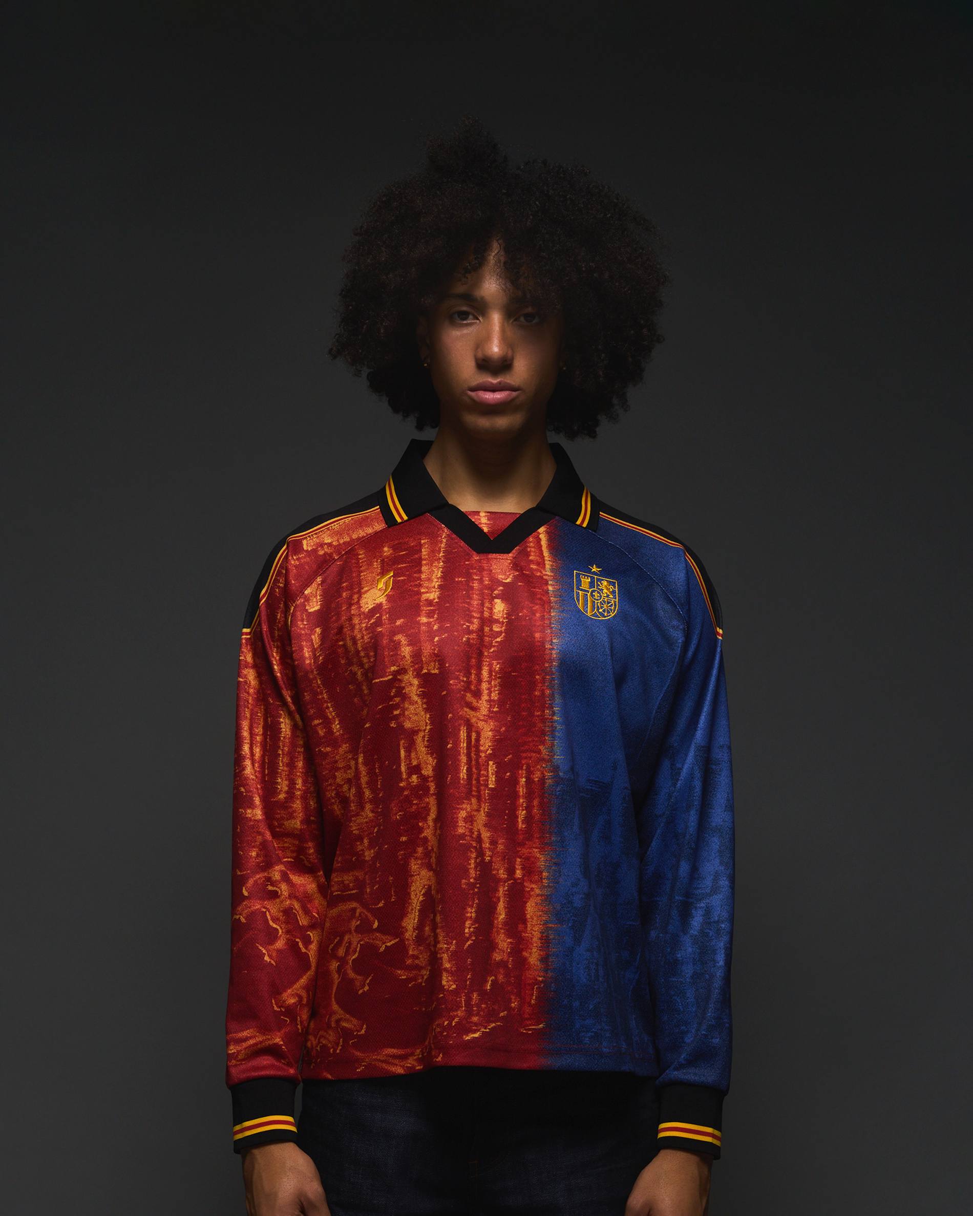 Spain on one longsleeve polo. Featuring: