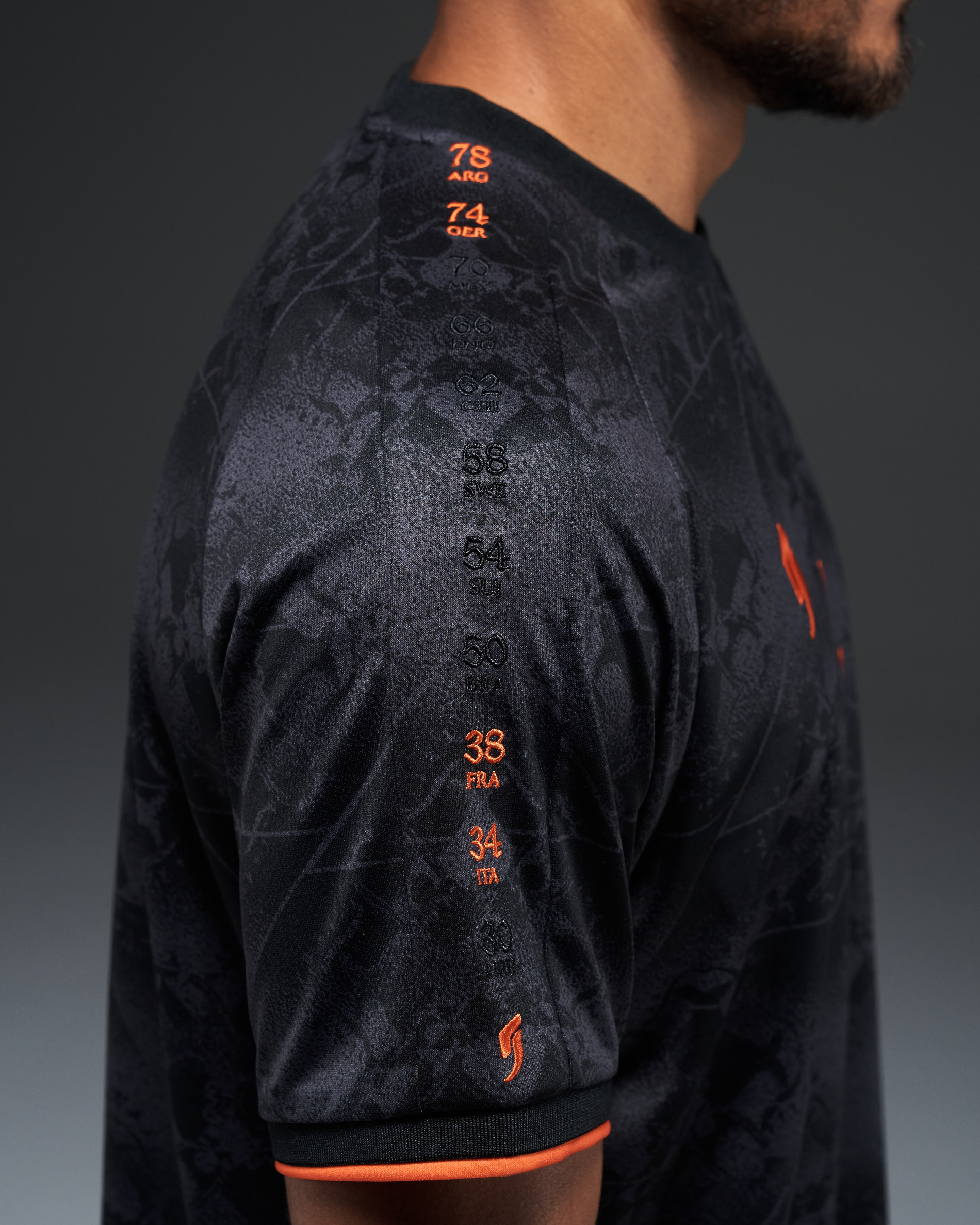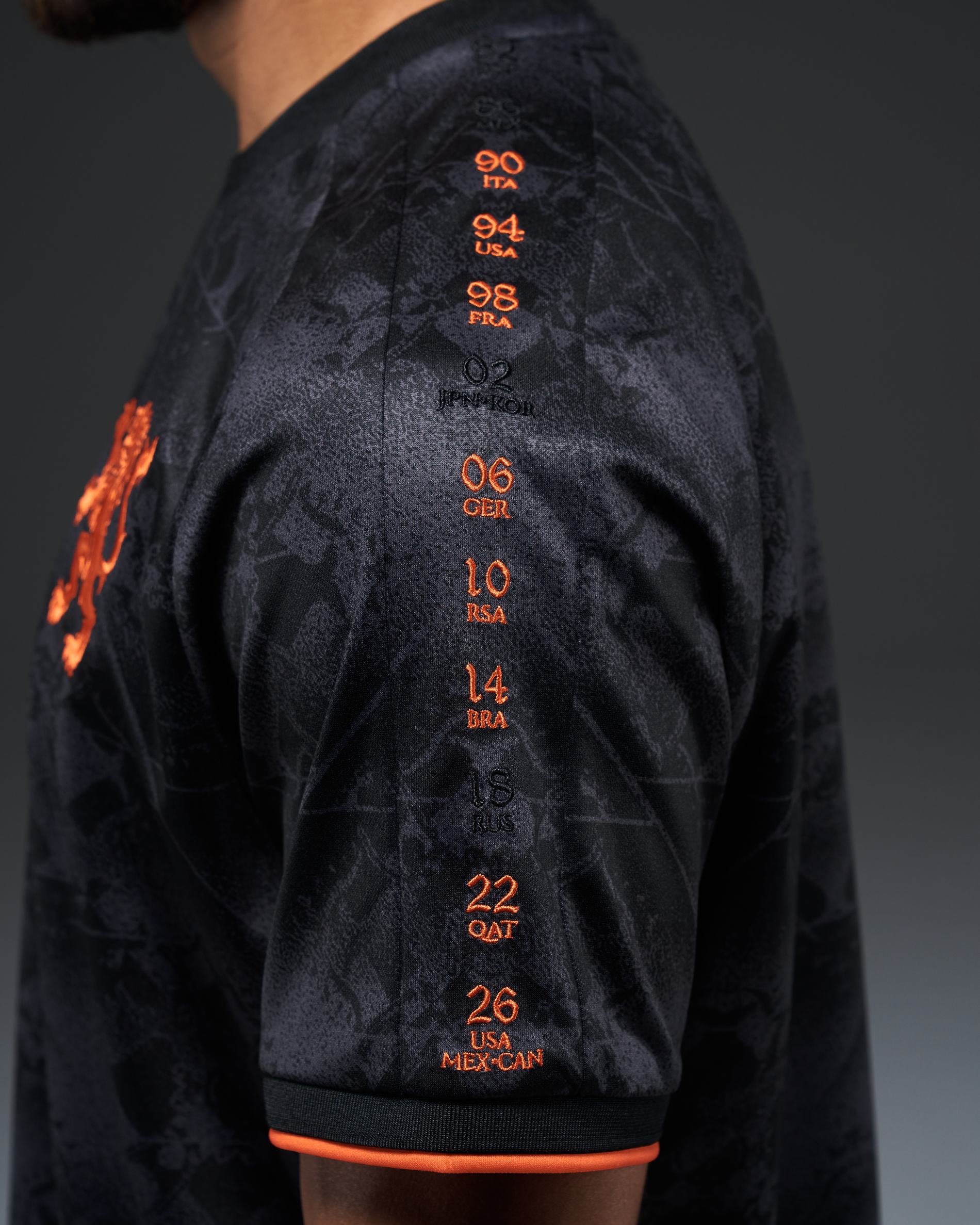 • Every World Cup The Netherlands entered, embroidered along the sleeves.